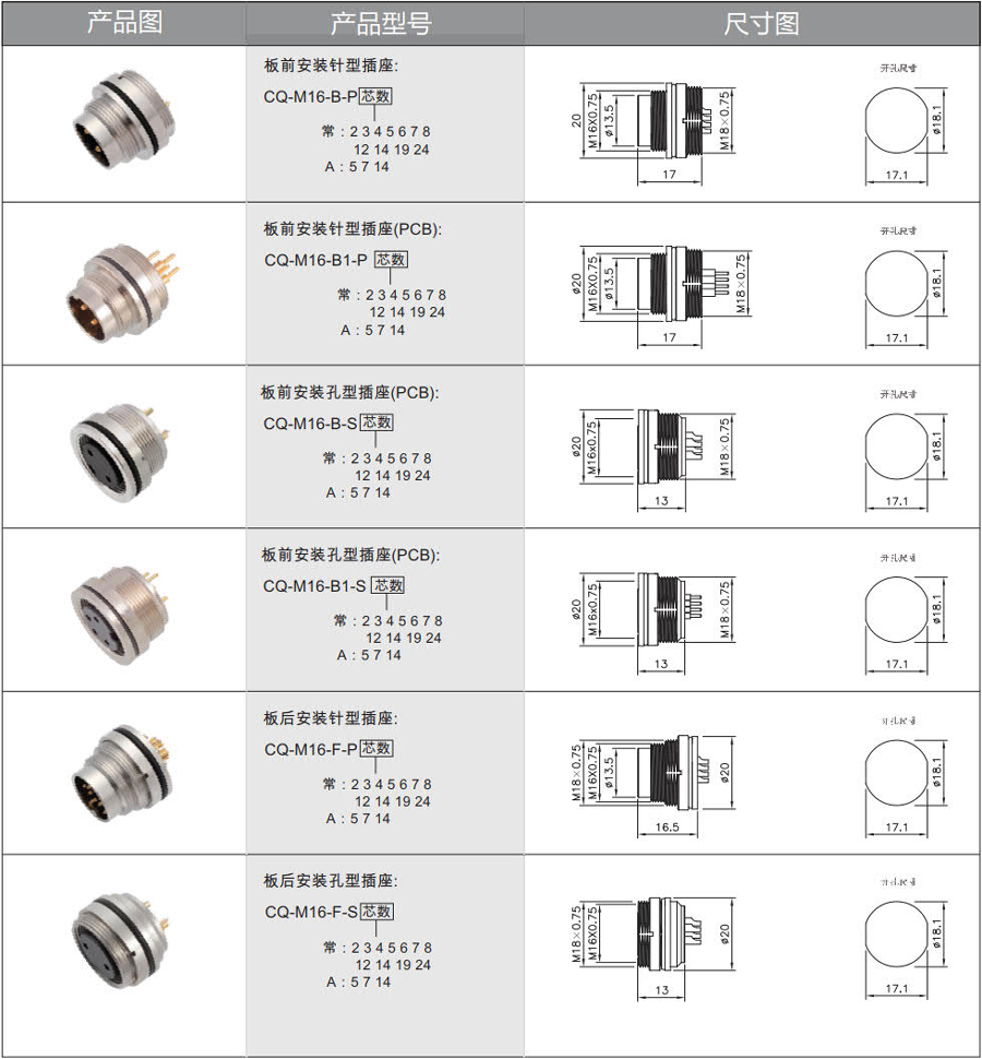 插座:板前安裝 板后安裝焊線及PCB板式